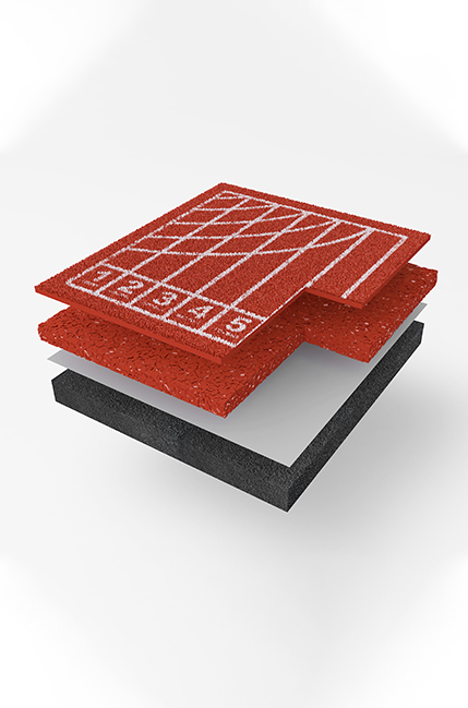 透氣型塑膠跑道是由底涂、彈性顆粒中層、面層組成的運動場地。底涂為單組分聚氨酯膠黏劑,與空氣中的濕氣反應固化;彈性顆粒中層由 PSV-211 單組分專用膠黏劑與 EPDM 顆粒按照 1:6~1:7 的質(zhì)量比混合后攤鋪而成;噴顆粒面層由 PSV-302 噴顆粒面膠、膠粉、EPDM 顆粒按比例混合,攪拌均勻后,噴涂于彈性顆粒中層上固化而成。