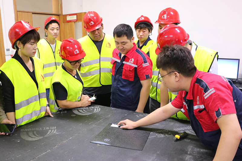 在東方雨虹唐山生產(chǎn)基地瀝青材料主任工藝師萬東永、東方雨虹工建集團(tuán)渠道天津區(qū)域經(jīng)理李雪鵬的帶領(lǐng)下,合伙人先后參觀了唐山東方雨虹的卷材生產(chǎn)車間,涂料生產(chǎn)車間和質(zhì)量檢測(cè)中心,從原材料進(jìn)廠質(zhì)量把控、產(chǎn)品的生產(chǎn)過程、成品出廠的層層質(zhì)量檢測(cè)等生產(chǎn)一線的實(shí)際情況有了全面認(rèn)知。