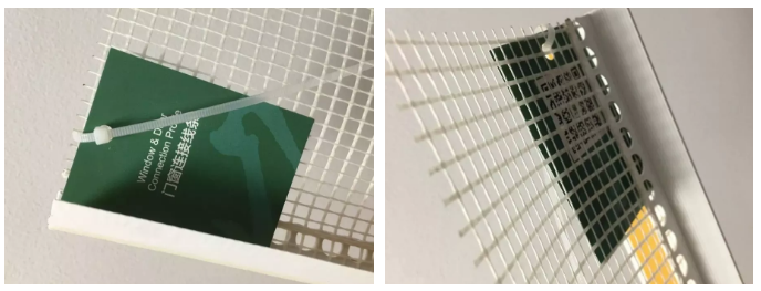 由特定形狀的PVC新型塑材,配以玻纖網縫制成一體的網格護角材料;防止角部開裂、提高抗沖擊性能、保證墻角垂直的同時降低施工難度、提高施工效率。